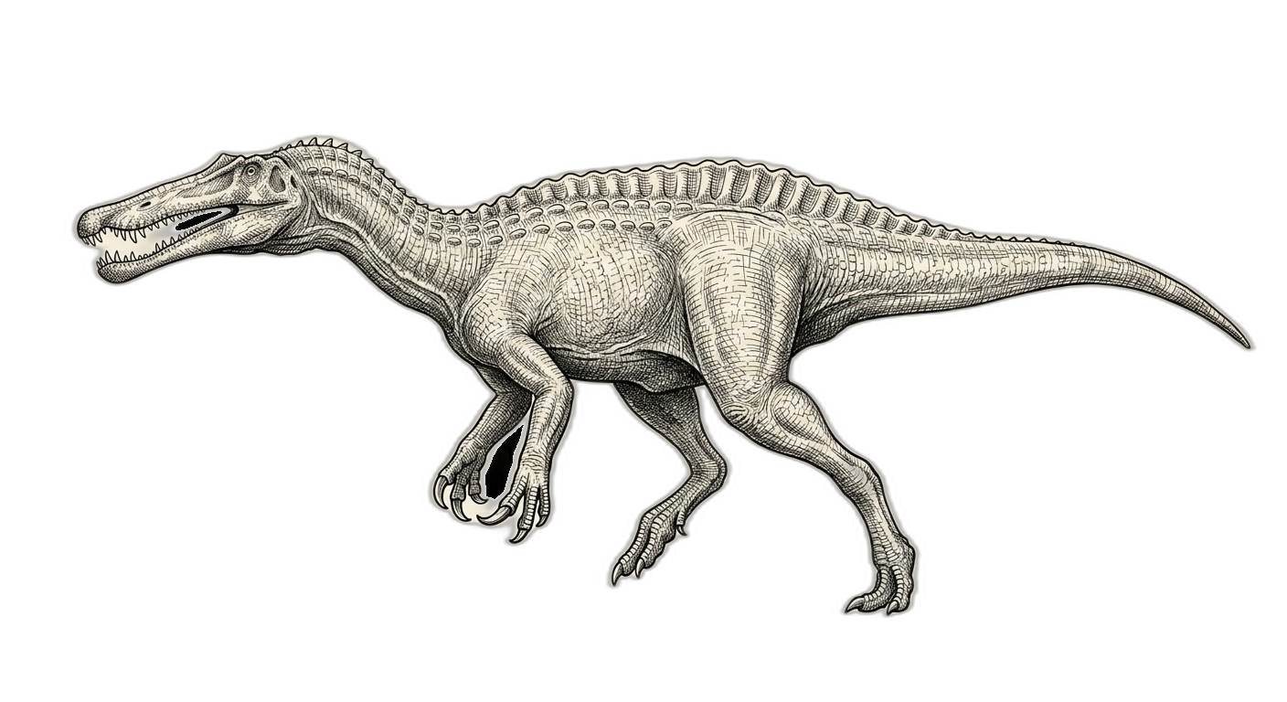 The group is divided into two major subfamilies. The baryonychines โ Baryonyx and Suchomimus โ had proportionally narrower snouts and large hooked thumb claws, possibly used as fish gaffs. The spinosaurines โ Spinosaurus, Irritator โ developed taller sail structures and, as revealed by a landmark 2020 paper, tails flattened into paddle-like swimming structures. Spinosaurus in particular has been transformed by recent discoveries from a terrestrial biped into something more like a giant, spine-backed crocodile โ capable of sustained aquatic locomotion.