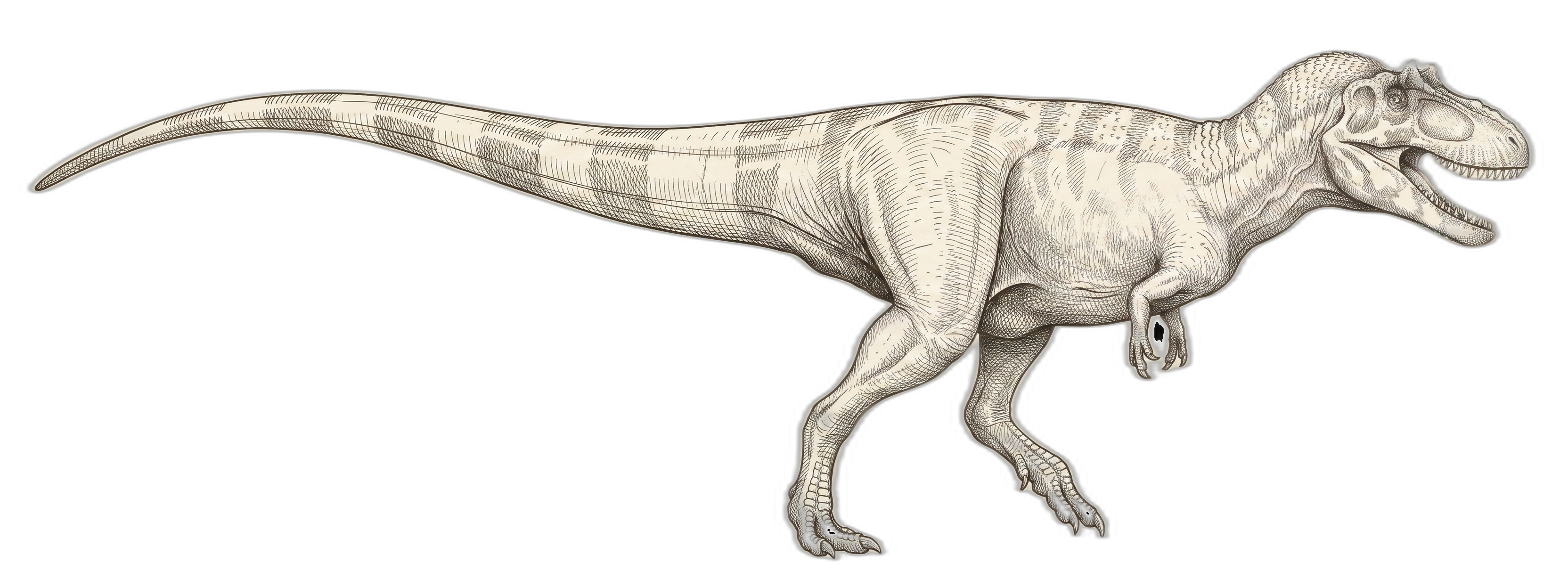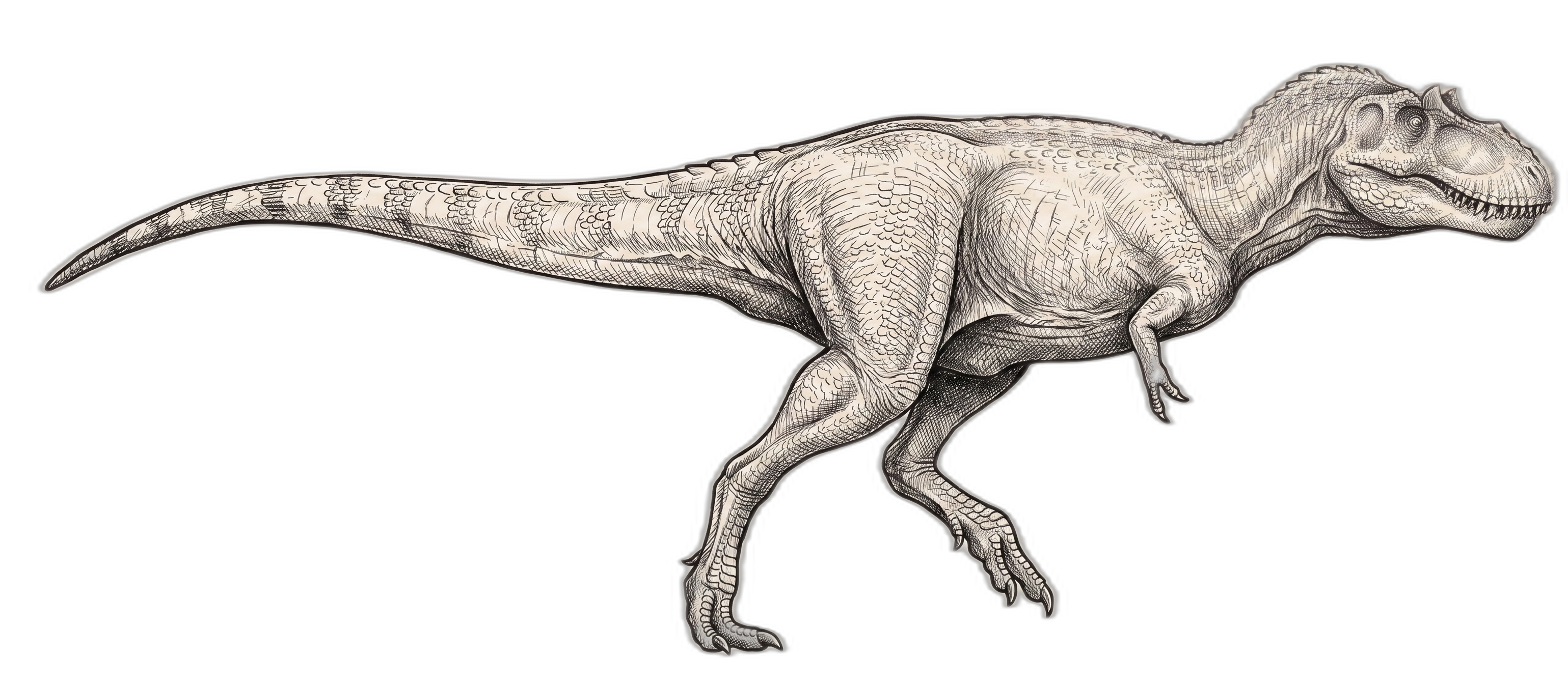 T. rex — up to ~9 m, ~9 tonnes